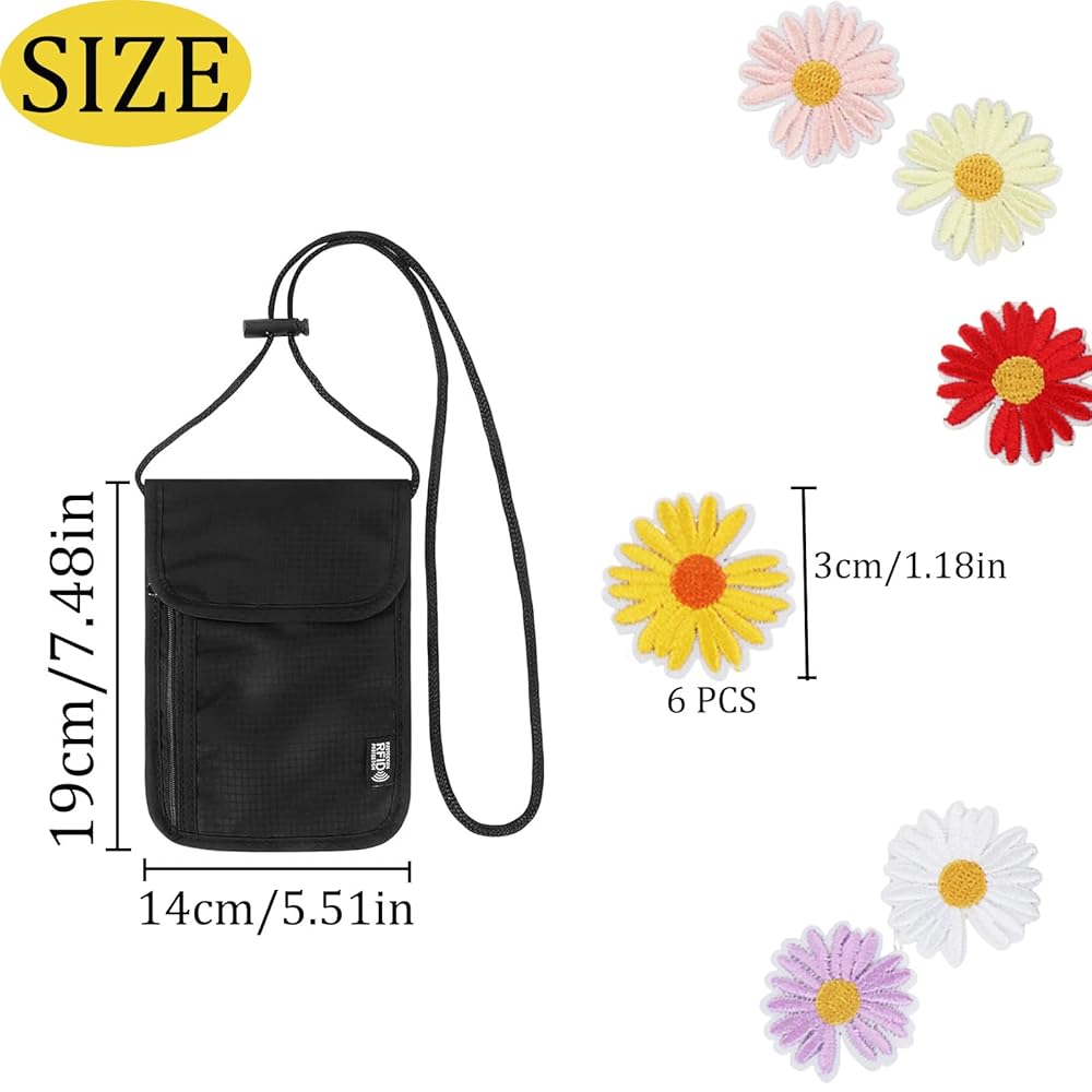 Brustbeutel Unisex Mit RFID-Schutz - Reisegeldbeutel Zum Umhängen - Inkl. 6 Bestickte Blumen-Aufnäher